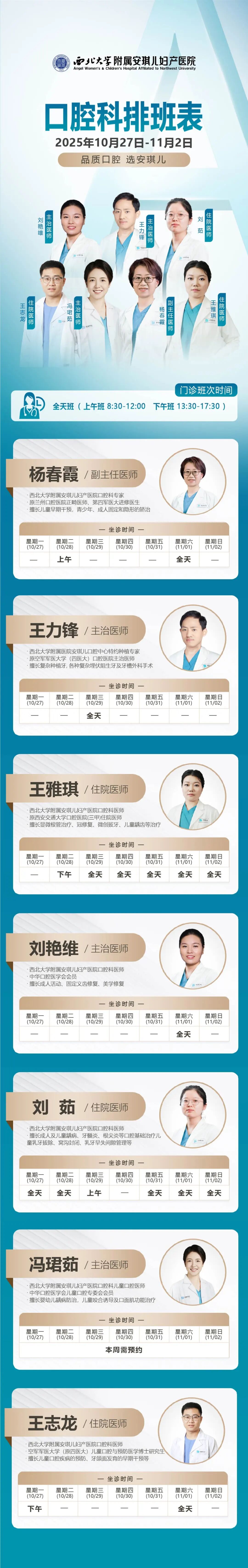 西安安琪儿妇产医院(10月27日至11月2日)专家坐诊时间表