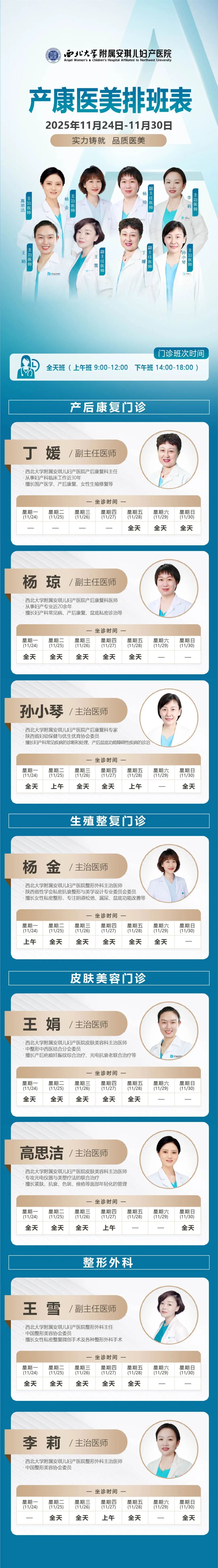西安安琪儿妇产医院(11月24日至11月30日)专家坐诊时间表