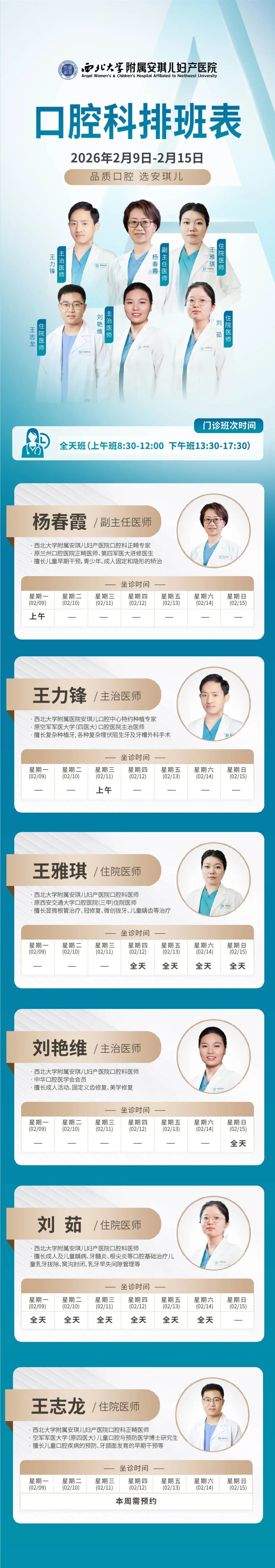 西安安琪儿妇产医院(2月9日至2月15日)专家坐诊时间表