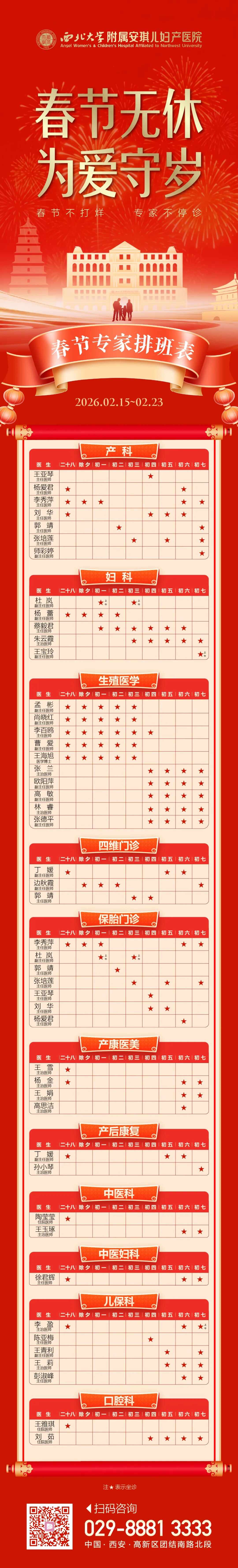 春节无休 为爱值守 | 专家照常坐诊,守护您的孕产健康(附春节排班表,请您查收!)